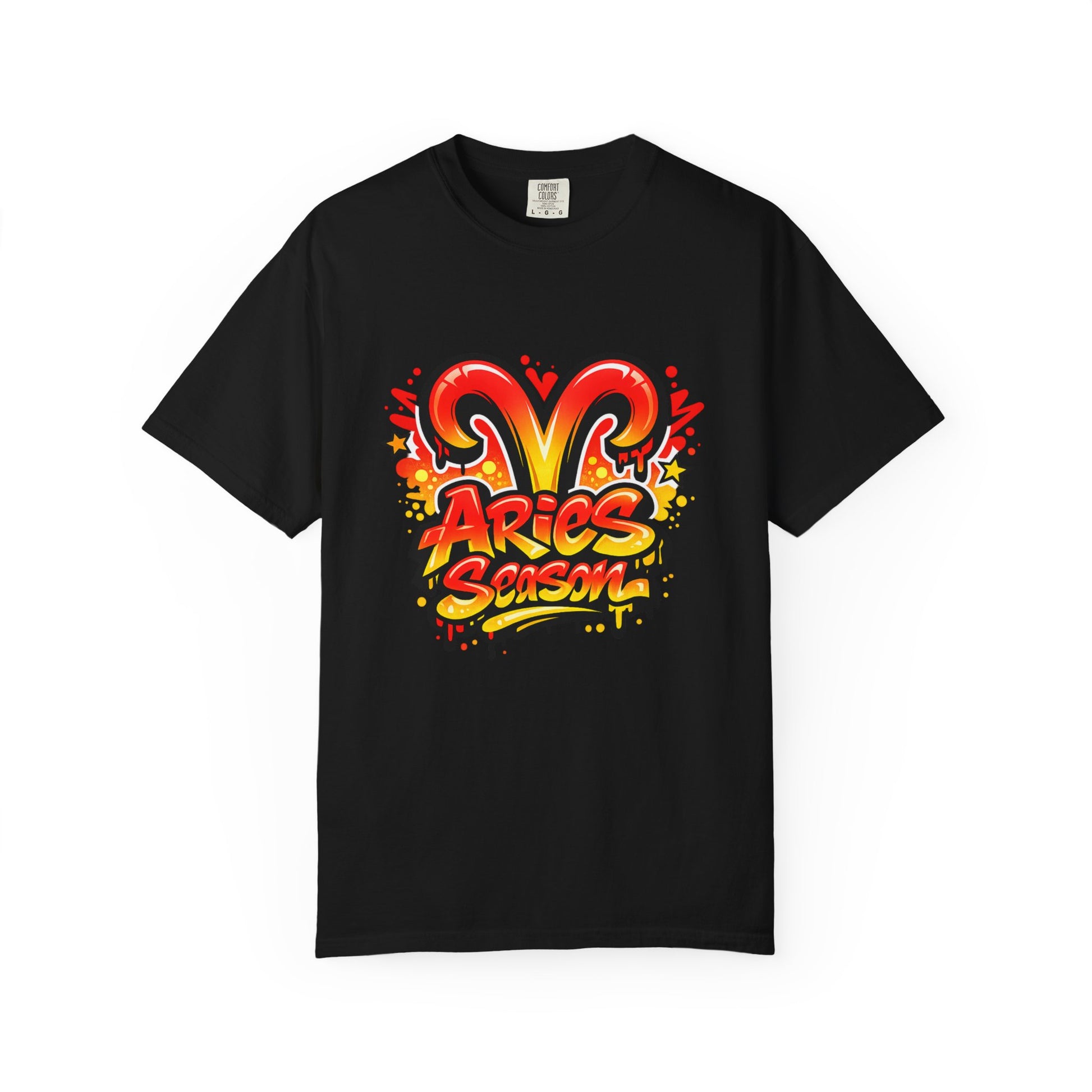 Aries Season Graphic Tee (Comfort Colors)- Bold Zodiac Astrology T-Shirt, Red & Yellow Aries Ram Design, Trendy Horoscope Shirt, Fire Sign Fashion - Size: S-4XL