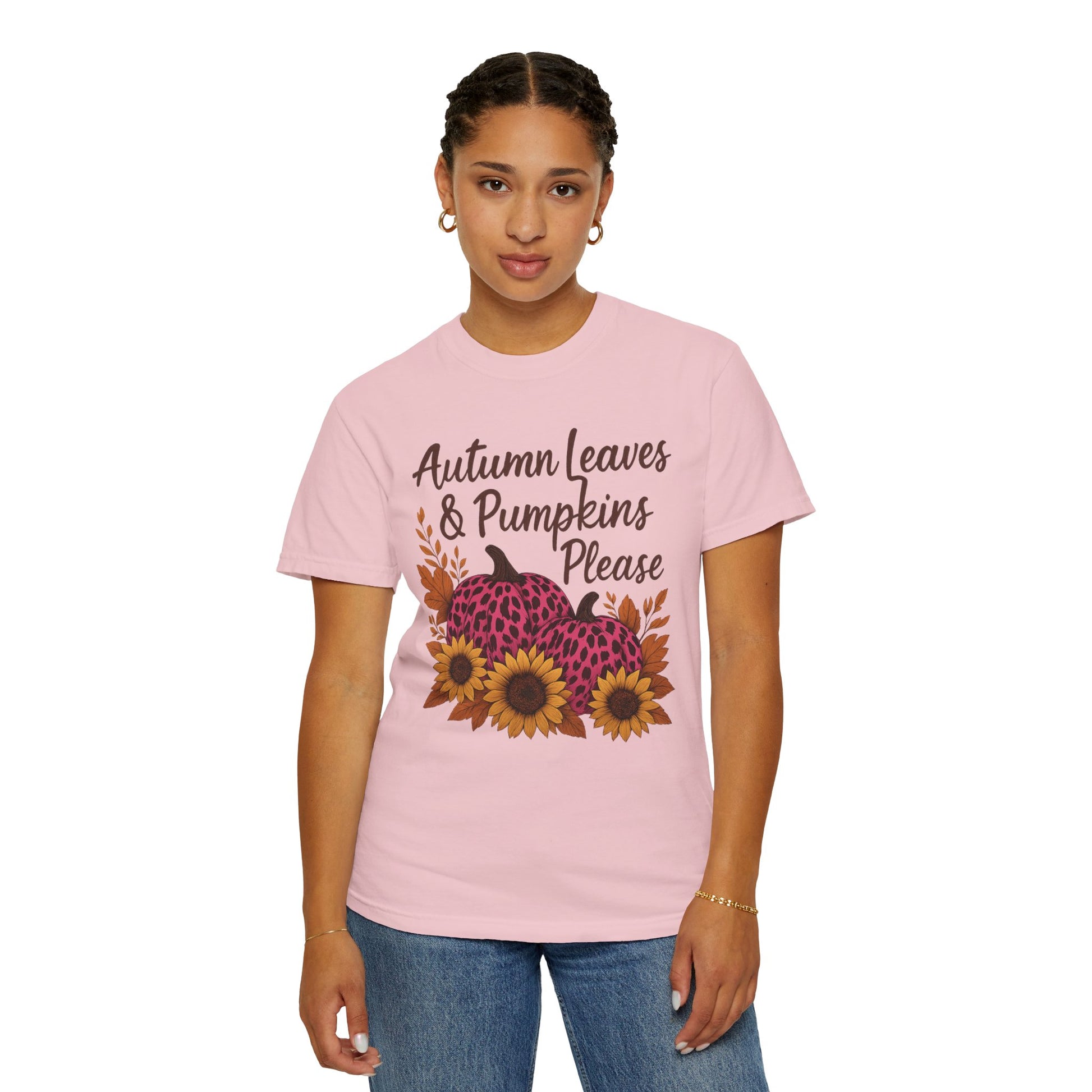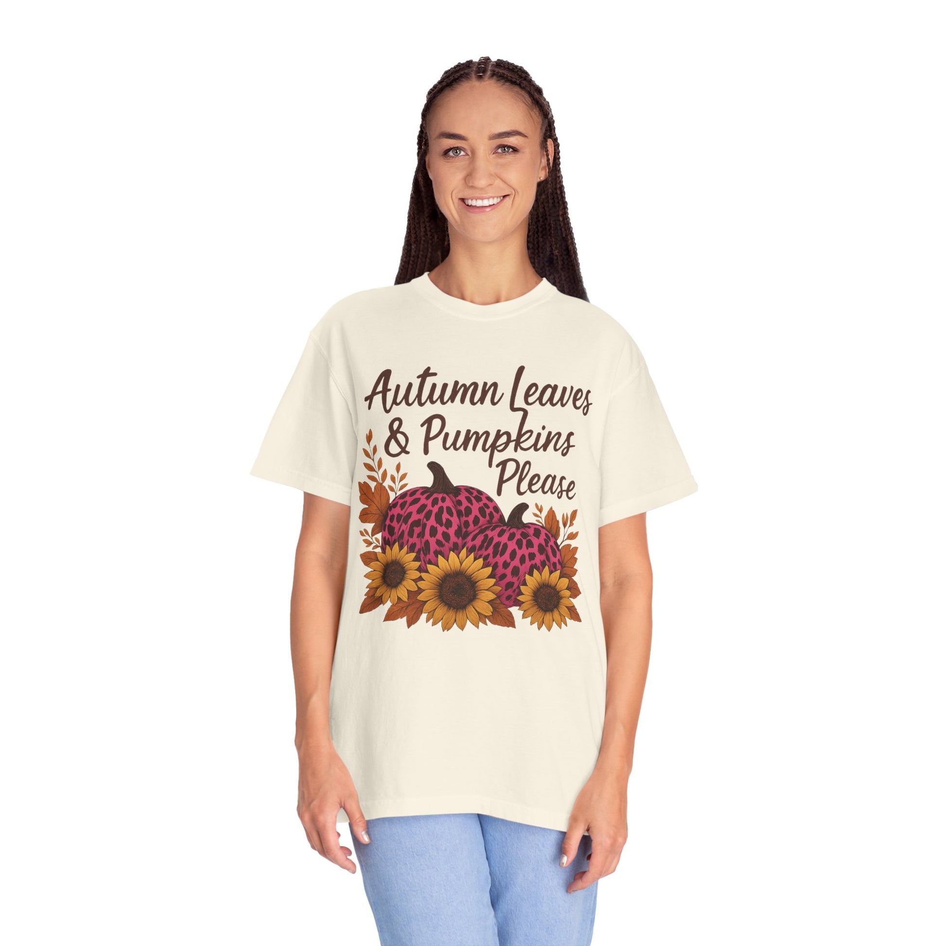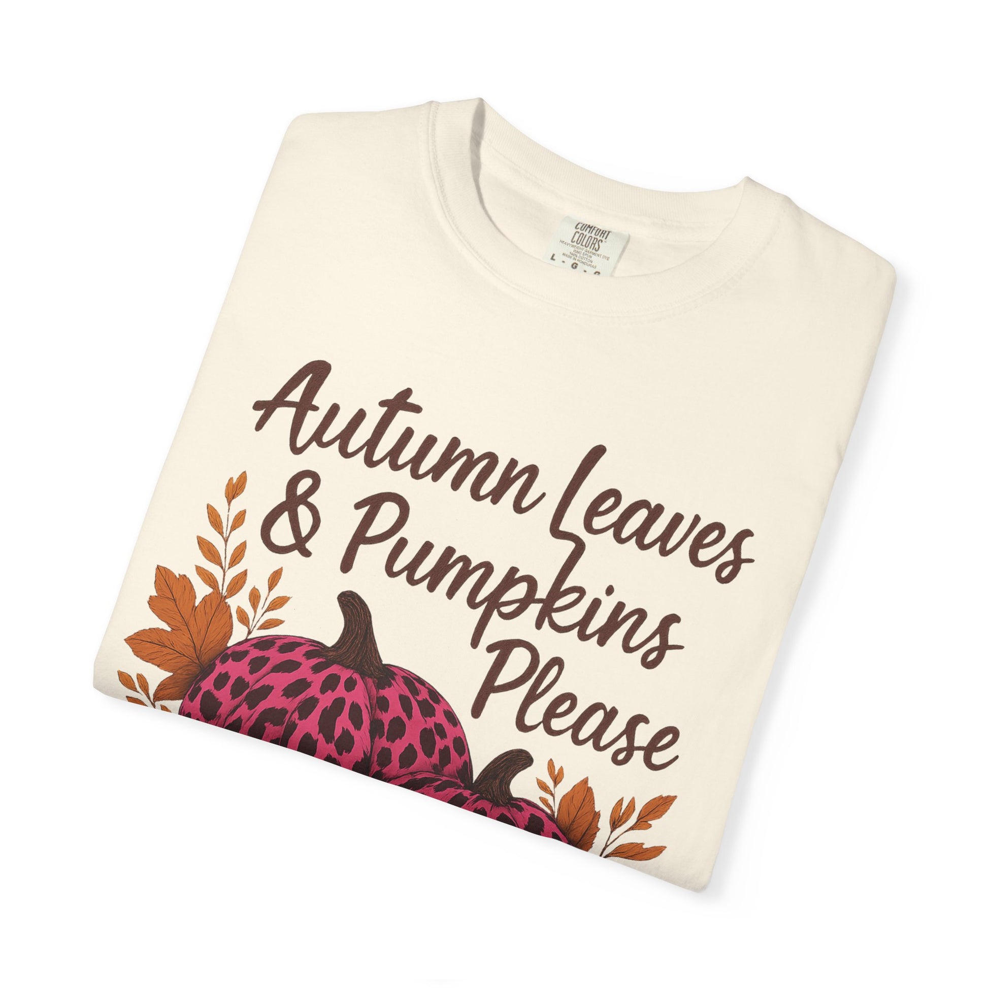 Autumn Leaves & Pumpkins Please - Fall Graphic T-Shirt (Comfort Colors) - Size: S-4XL