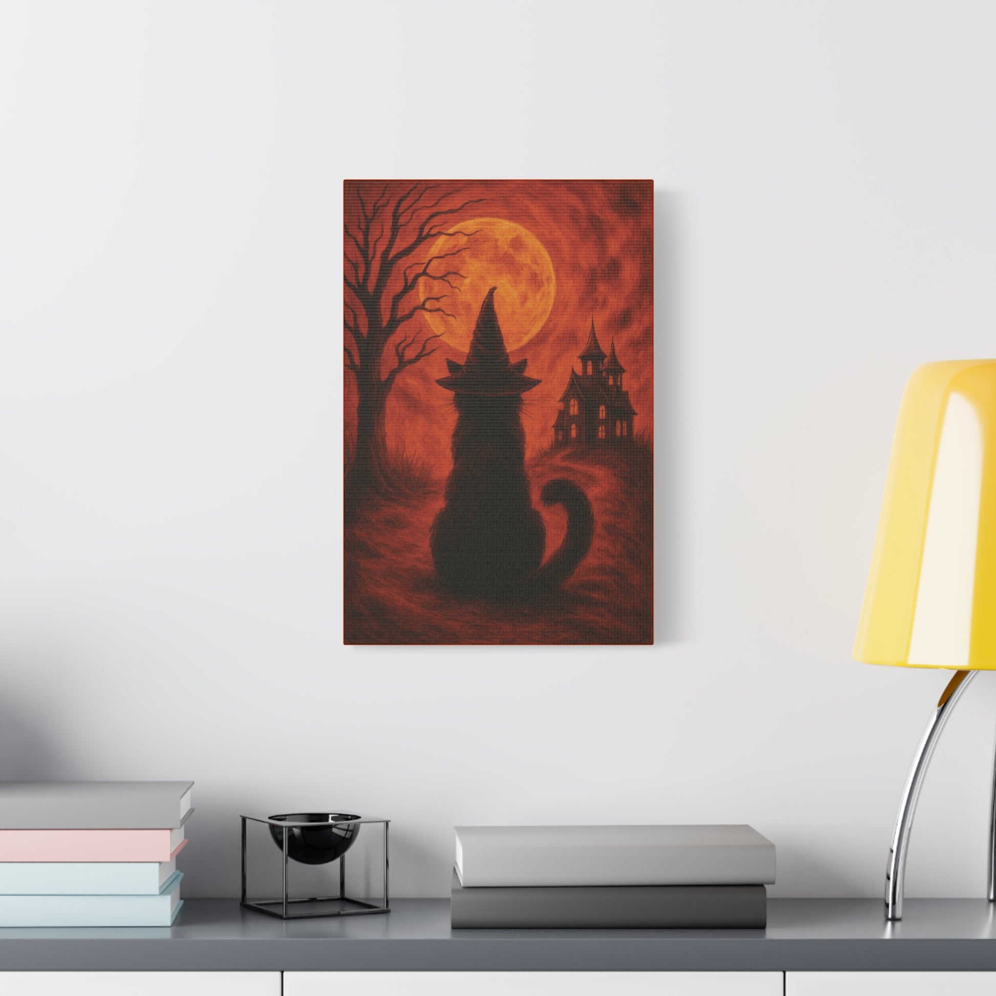 Transform your space with this stunning matte canvas wall art, designed to evoke a sense of mystery and enchantment. Featuring a whimsical scene of a black cat silhouetted against a vibrant full moon, this piece brings a touch of magic to your home. Perfect for Halloween celebrations or adding a cozy charm to your living space throughout the autumn season. This canvas is an ideal gift for cat lovers, art enthusiasts, or anyone who appreciates unique decor. Whether decorating for spooky season or showcasing your love for feline friends year-round, this art piece effortlessly fits into any cozy nook or gallery wall, immersing your surroundings in an atmospheric vibe.
